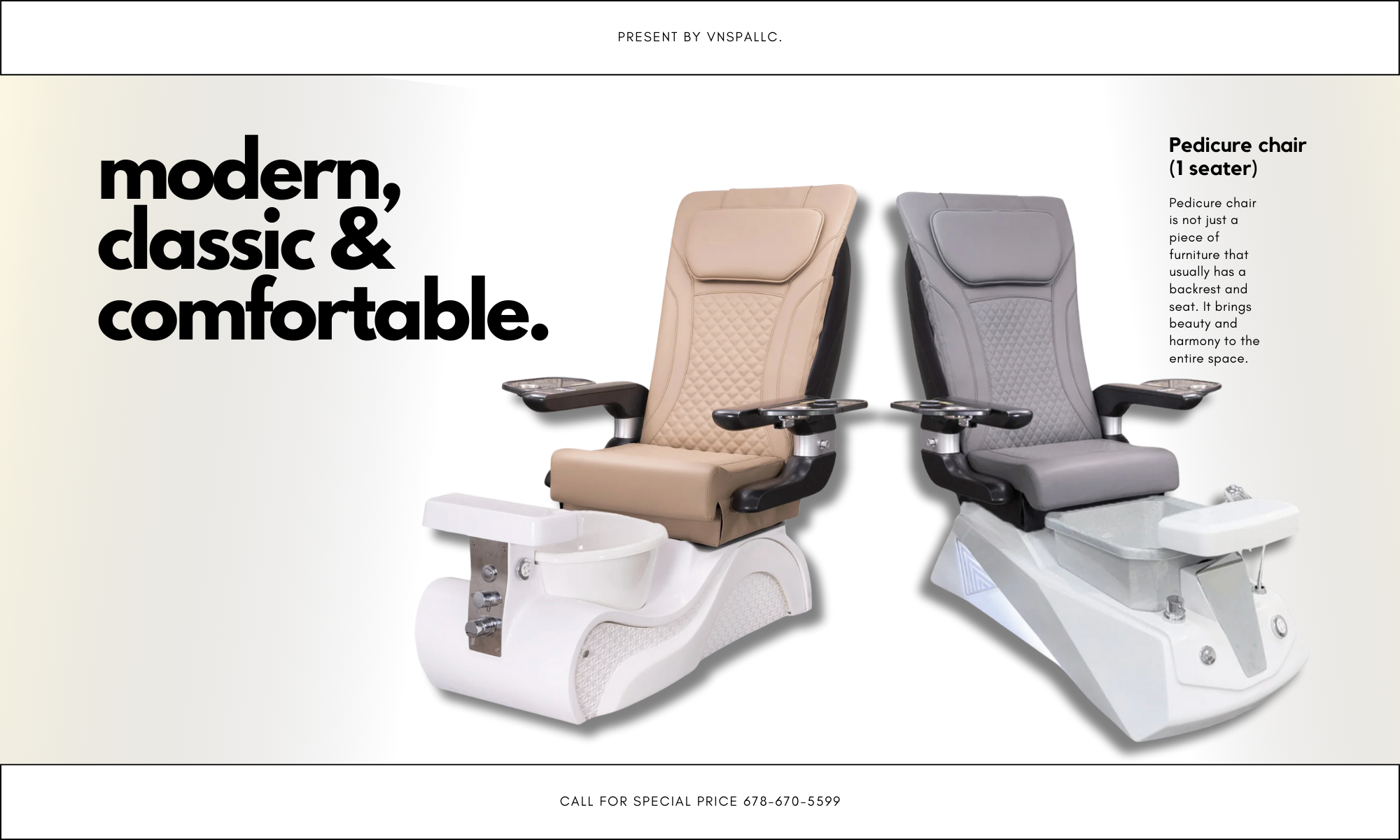 VNSPA is a unit specializing in providing product lines of PEDI-Chair, Mani-Table, Kiosk 4k Touchscreen, Shampoo Bed, Custom Design for Nail Salon in the US. Our goal is " WE ARE NOT THE ONLY ONE - WE ALWAYS DO THE BEST "